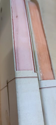 Due confezioni di nastro in velluto, due tonalità di rosa, m 10 x 1,5 cm.. 200 g.