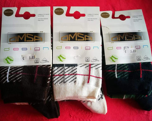 Gambaletti moda OMSA, sei paia, taglia unica, a fantasia e tinta unita. 300g.