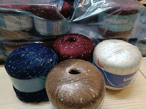 Lana Gatto Hong Kong in gomitoli di lurex e micro paillettes. 50 g.