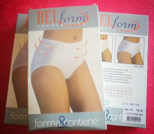 Offerta di dieci culotte Belform contenitive in cotone elasticizzato. Taglia 7, bianche e nere assortite secondo disponibilità. 450g.