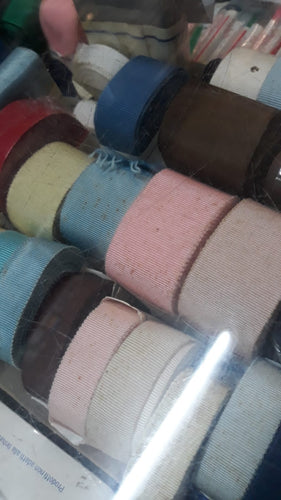 Nastri doppio raso N 1 e 1/2. Sette confezioni da dieci metri, colori in foto. 200g..