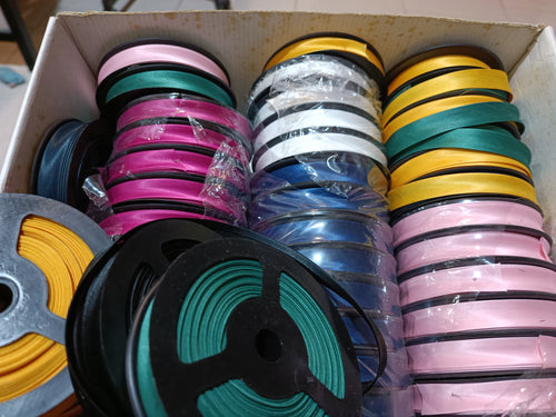 Rotolo da 100m di elastico n 12 ( ingiallito nei primi metri)e confezione da m 10 e alt 25 mm. di elastico gros grain bordeaux. 600g.