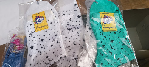 Calze Sant'Agostino, taglia unica, 4 bianche e due verde. 300g.