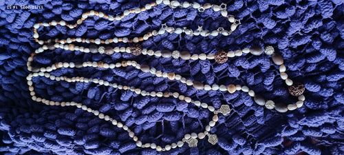 Tre collane originali realizzate con semi e rodio. 200 g.