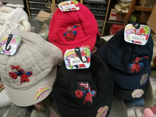 Cappellini bimbi Spiderman, sei, in morbido tessuto, colori assortiti. 400g.