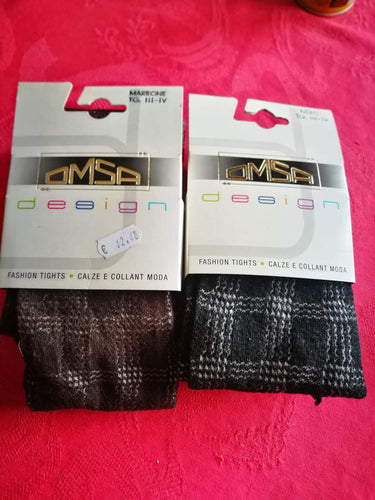 Collant moda OMSA, due paia, fantasia nero e marrone, taglia III/IV.