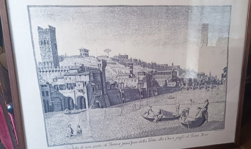 Stampa su seta Manifattura Segalini, incorniciata anni sessanta. Misure cm 40 x cm 35. Cornice in legno con vetro. 800g.