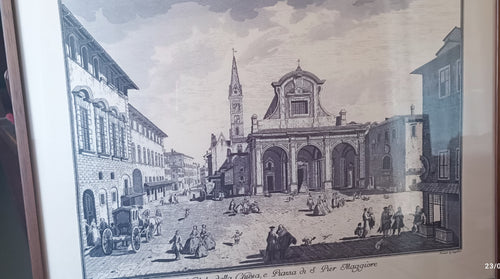 Stampa su seta Manifattura Segalini, incorniciata anni sessanta. Misure cm 38 x cm 50. (N. 3)Cornice in legno con vetro. 1 kg.