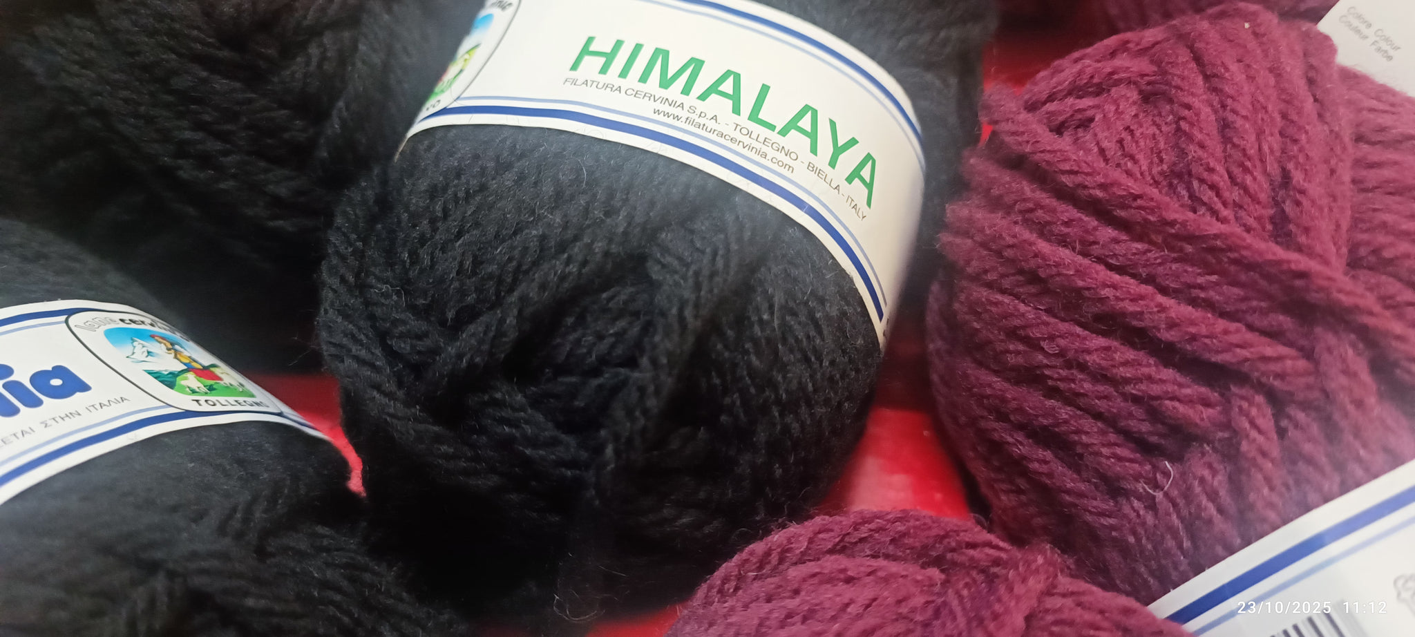 Mix di due colori di misto lana(65%) Himalaya Cervinia, ferri7/8 , 40 m., colori nero e vinaccia. 400g. €12,90