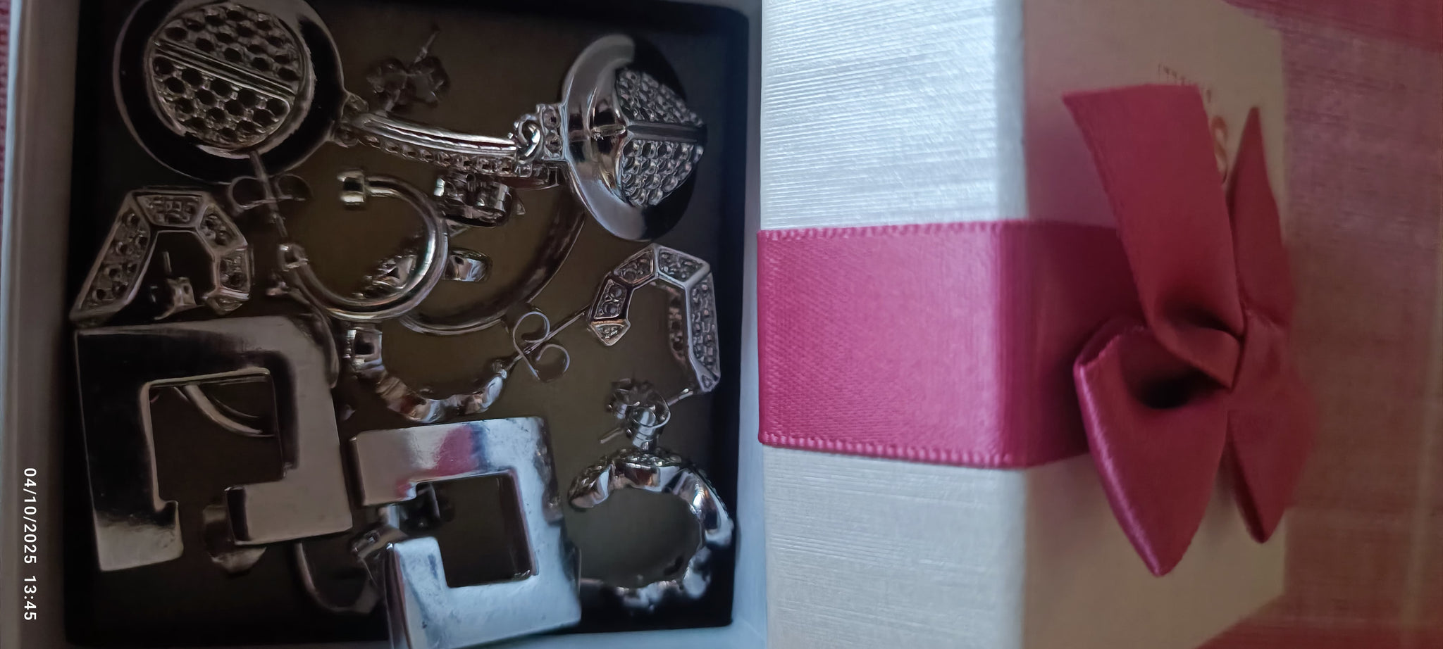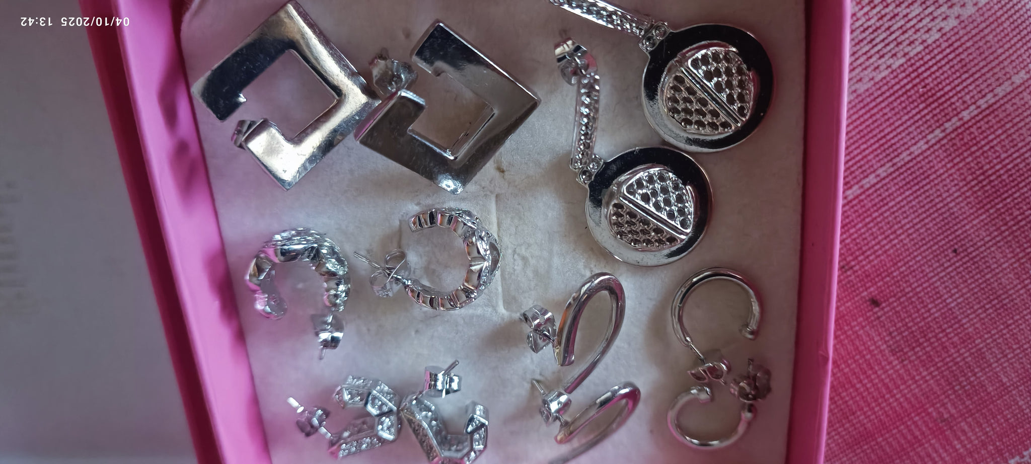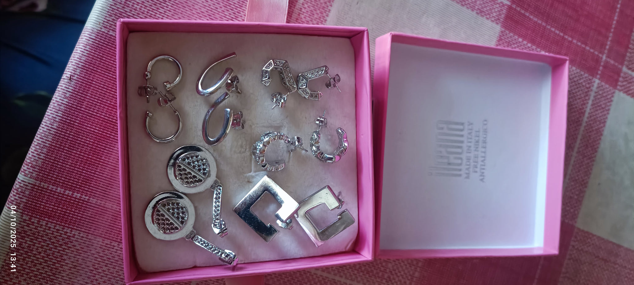 Set di sei paia di orecchini in rodio(anallergici). 100g. €18,00.