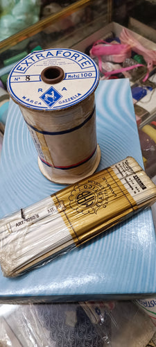 Elastico n8, un rotolo da 100m e una confezione da 20 m (un po' ombrato in superficie). 400g.