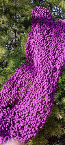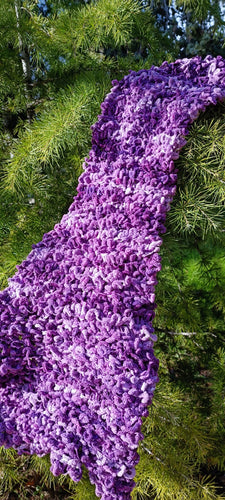 Scialle in elegante filato in sfumato di lilla e viola di ciniglia. 600g.