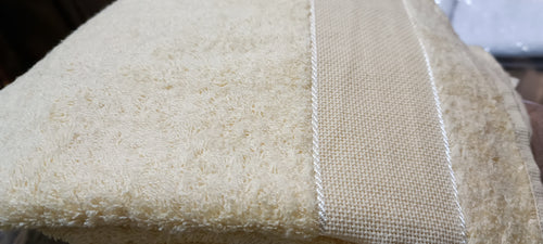 Quattro asciugamani ospiti, giallino, con tela da ricamare. 200g.