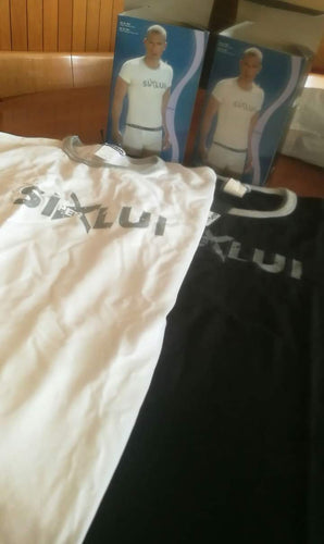SiXLui, due T-shirt in puro cotone, taglia XL, una bianca e una nera. 400g.