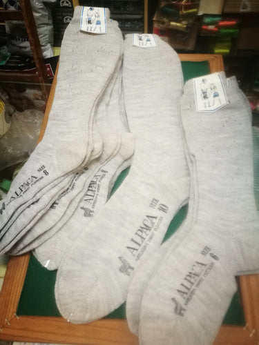Stock di calzettoni di Alpaca, colore grigio, taglie 6(tre paia), 8(cinque paia), 10(un paio).600g.