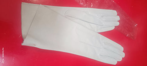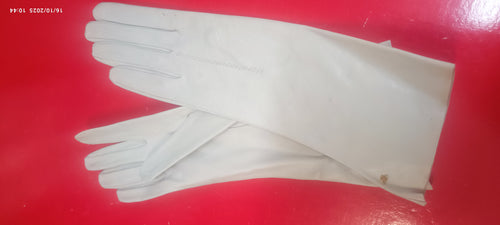 Un paio di guanti lunghi vintage in vera pelle lavabile, colore ghiaccio, taglia 7. 100g
