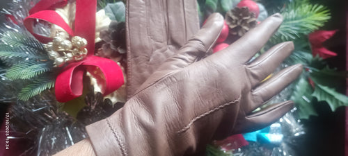 Guanti vintage Aurora in vera pelle, colore nocciola, taglia 7, morbidi e caldi. 70 g.