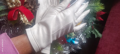 Un paio di guanti vintage in vera pelle lavabile, colore ghiaccio, taglia 5,5. 100g.