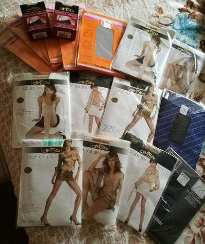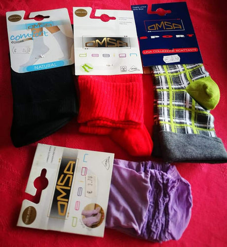 Stock di collant (fantasia e tinta unita) e gambaletti OMSA e Franco Bombana, taglia IV. 500g.