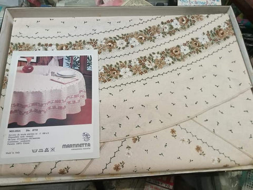 Tovaglia stampata in puro cotone, tonda con diametro 180cm. 1,1kg..