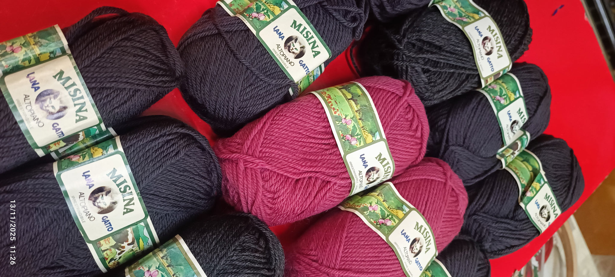 lana Gatto Misina Altopiano in mix di gPurarigi e rosa( 10 gomitoli grigio, 2 grigio melange e due rosa acceso). 650 g.